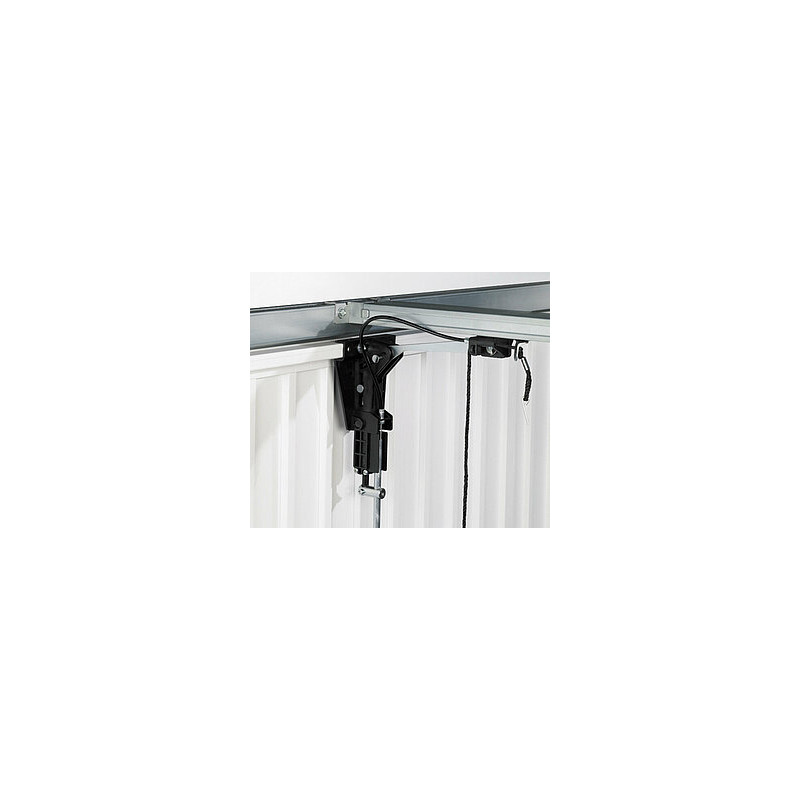 Il procure le maximum de sécurité, grâce à ses 3 points de verrouillage. Le verrouillage mécanique manuel de la porte, en deux points latéraux indépendants du sol, est activé par le moteur dès la fermeture définitive de la porte. Le 3ème point de verrouillage est assuré directement par le moteur en partie haute de la porte.