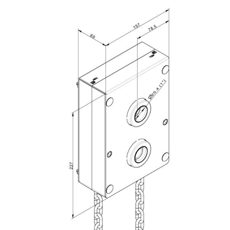 Adapté à un axe plein ou creux de 25,4mm de diamètre. Livré avec une chaine de 8m + clavettes.