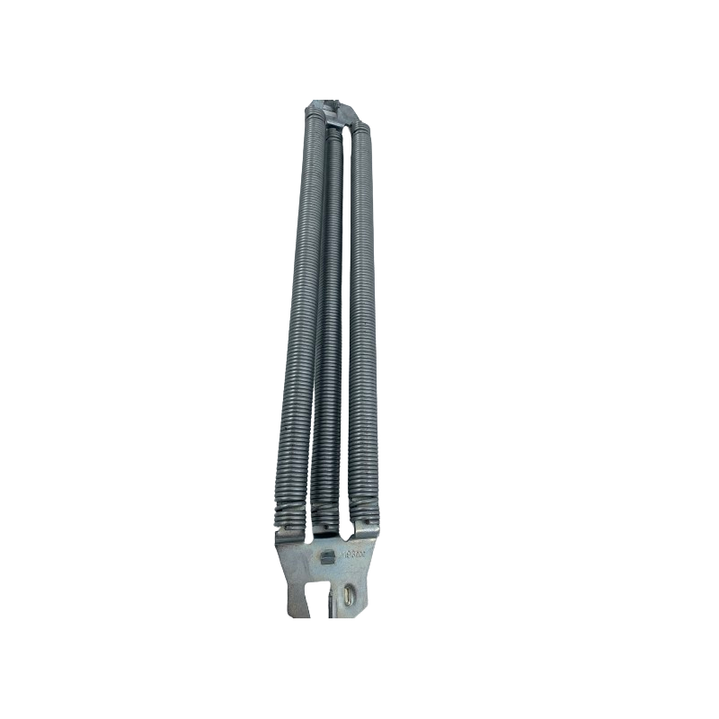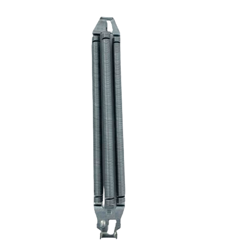Jeu de 3 ressorts de traction d'origine numéro 2, 02 ou 002 Tubauto montés sur leurs crochets pour portes de garage basculantes.