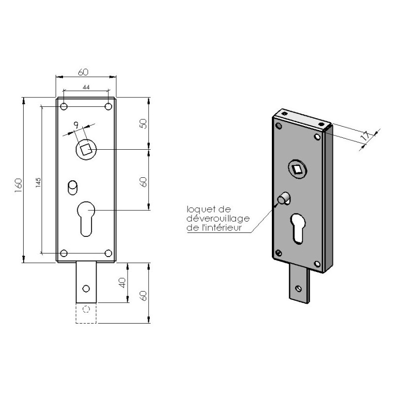 - Coffre de serrure EP 17 avec 1 ou points de fixation selon le système choisi